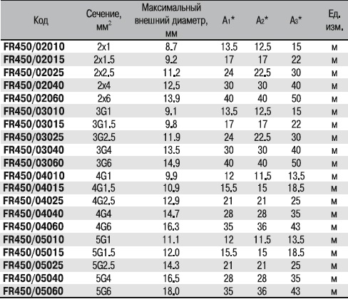 • изоляция жил: ПВХ пластикат TI2 неподдерживающий горение, с низким выделением коррозионных газов. Если в обозначении сечения  кабеля имеется символ G,  это значит, что одна из жил  имеет желто-зеленую изоляцию - внешняя изоляция: ПВХ пластикат ТМ2 неподдерживающий горения с низким выделением  коррозионных газов