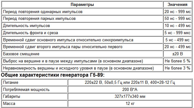 Генератор Г5-89 предназначен для генерирования основных импульсов прямоугольной формы положительной и отрицательной, нормальной и инвертированной полярностей в режимах одинарных и парных импульсов. Используется для исследования, проверки, настройки и обслуживания устройств вычислительной и измерительной техники, техники связи.