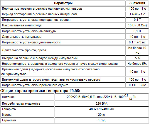 Генератор Г5-56 - двухканльный источник импульсных напряжений с широким диапазоном изменения периода повторения, временного сдвига, длительности и амплитуды выходных импульсов. Прибор используется для исследования и проверки быстродействующих радиоэлектронных устройств, интегральных схем, систем связи, измерительной и вычислительной техники.