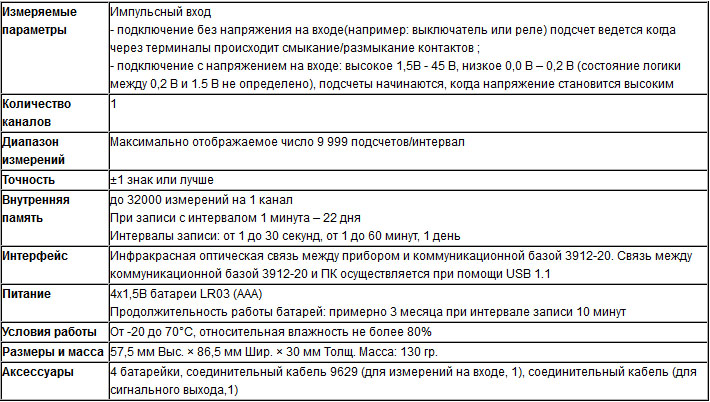 Компактный легкий прибор, предназначен для измерения и записи в память значений импульсов в различные промежутки времени при помощи соединительного кабеля. Прибор идеален для быстрого подсчета и записи в память импульсов от гигрометров, расходомеров и импульсных счетчиков электроэнергии.