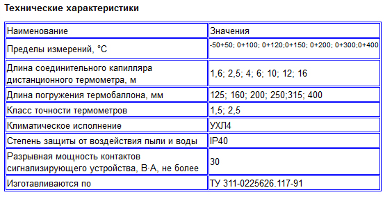 Термометр манометрический, конденсационный, показывающий сигнализирующий