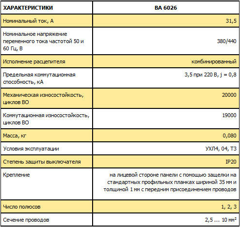 BA6026 - миниатюрные автоматические выключатели предназначены для ручного включения и отключения цепи напряжением 220/380 В, а также защиты электрических сетей и асинхронных электродвигателей в аварийных режимах путем автоматического отключения. Соответствуют требованиям ТУ16-90 ИГКЖ.641252.231ТУ.