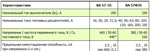 ВА 57ф35 - серия автоматических выключателей, предназначенных для проведения тока в нормальном режиме и отключения тока при коротких замыканиях, перегрузках и недопустимых снижениях напряжения, а также для нечастых (до 30 в сутки) оперативных включений и отключений электрических цепей.