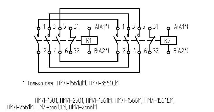 Номинальное напряжение втягивающей катушки –24, 36, 40, 48, 110, 127, 220, 230, 240, 380, 400, 415, 500, 660 (50 гц)