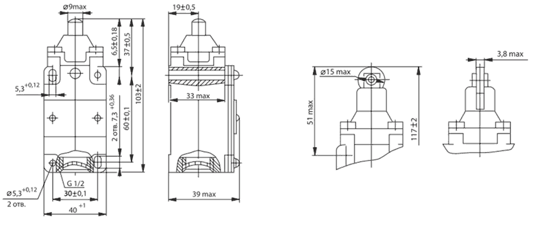 Выключатели путевые ВП21 Климатическое исполнение УXЛ4, О4, Т2, У2 ,ТУ У3.12-00216875-018-96 Назначение Выключатели предназначены для коммутации электрических цепей управления переменного напряжения до 660 В, частоты 50 и 60 Гц., и постоянного напряжения до 440 В, под воздействием управляющих упоров в определенных точках пути контролируемого объекта.