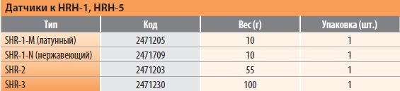 -хар-ки датчиков SHR-1-M и SHR-1-N: вес 10 г, температура эксплуатации - 25...+60 °C, длина зонда: 65,5 мм, 4 мм, резьба - 12 мм, сечение подключаемых проводов: 2.5 мм2;