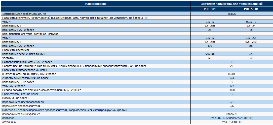 Первичный преобразователь датчика уровня РОС-501И имеет маркировку взрывозащиты "1ЕхibIIВТ5 в комплекте РОС-501И", соответствует требованиям ГОСТ Р 51330.0-99, ГОСТ Р 51330.10-99 и предназначен для установки во взрывоопасных зонах помещений и наружных установок согласно гл. 7.3 действующих ПУЭ.