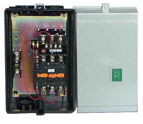 Пускатель нереверсивный в оболочке, с тепловым реле, со степенью защиты IP54, c переменным током цепи управления, с кнопкой - реле, пуск, и сигнальной лампой, с одним замыкающим вспом. контактом, с уменьшенными весогабаритными показателями.