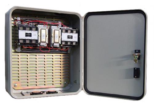 Контакторы реверсивные в металлической оболочке, без теплового реле, со степенью защиты IP54, c переменным током цепи управления. Можно увеличивать количество дополнительных контактов, используя приставки ВКЛ.