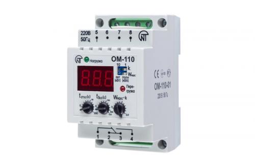 ОМ-110 выполняет отключение нагрузки в случае превышения заданного пользователем уровня максимально допустимой мощности потребления нагрузки (с заданным временем отключения) и последующим автоматическим включением (с заданным временем задержки включения или с блокировкой повторного включения).