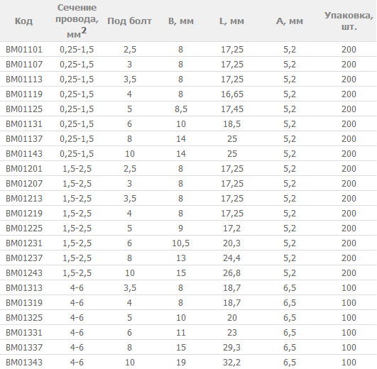 Кабельные наконечники кольцевые без изоляции (материал-луженая медь)