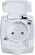 Розетка открытой установки пылевлагозащищенная одноместная без заземляющих контактов, с защитными шторками