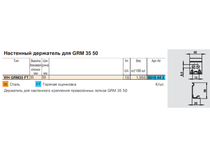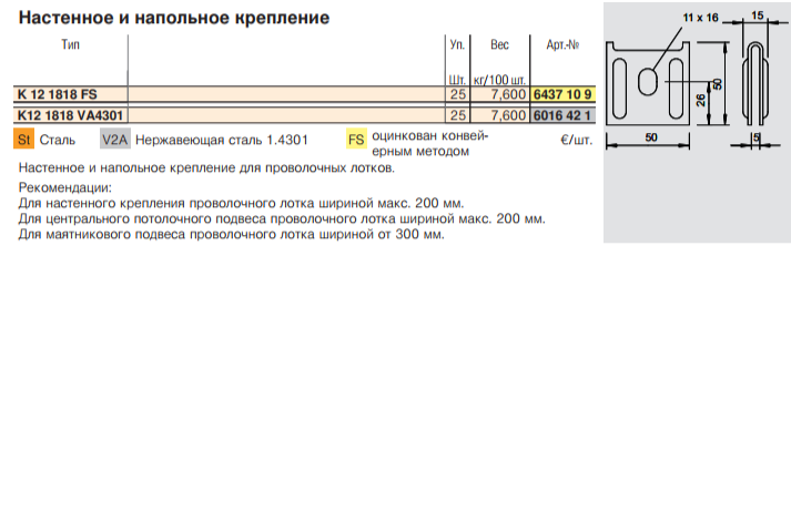 Тип: TrayFix-16-L