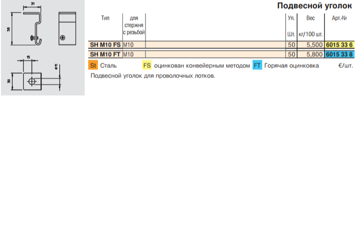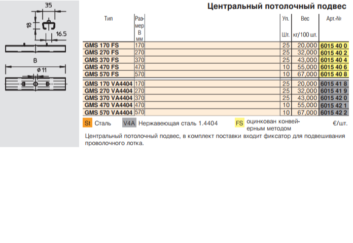 Центральный потолочный подвес, включая фиксатор для подвешивания проволочного лотка.