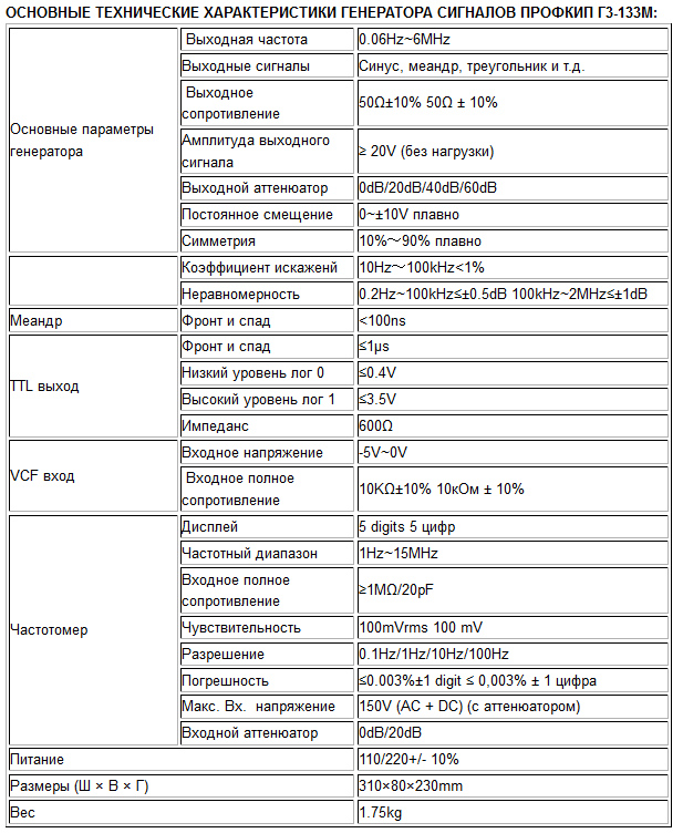 Основные особенности генератора сигналов НЧ ПРОФКИП Г3-133М: