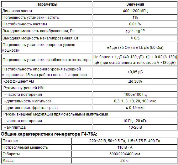 Генератор Г4-76А используется в качестве источника сигнала при проверке и регулировке различных радиотехнических устройств, при работе с измерительными линиями, измерителем ослаблений в лабораториях, цехах и ремонтных мастерских.