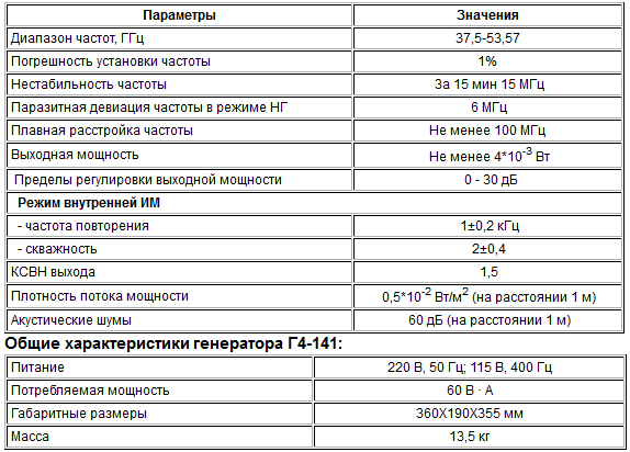 Генератор Г4-141 предназначен для использования в качестве источников СВЧ колебаний при настройке, регулировке и испытаниях радиотехнических устройств миллиметрового диапазона волн.