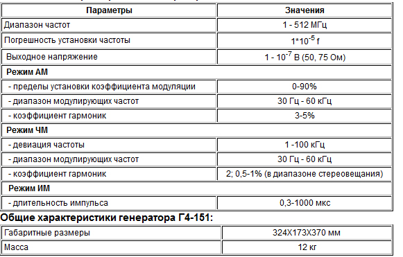 Генератор Г4-151 - прибор с широким диапазоном частот, высокой стабильностью и точностью ее установки. Может управляться дистанционно аналоговыми сигналами. Предназначен для регулировки, настройки и испытаний различной радиотехнической аппаратуры.