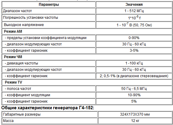 Особености генератора Г4-152: