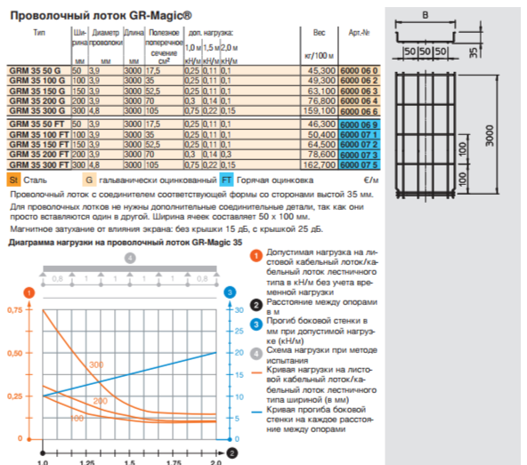 Проволочные лотки с боковой стенкой высотой 35 мм
