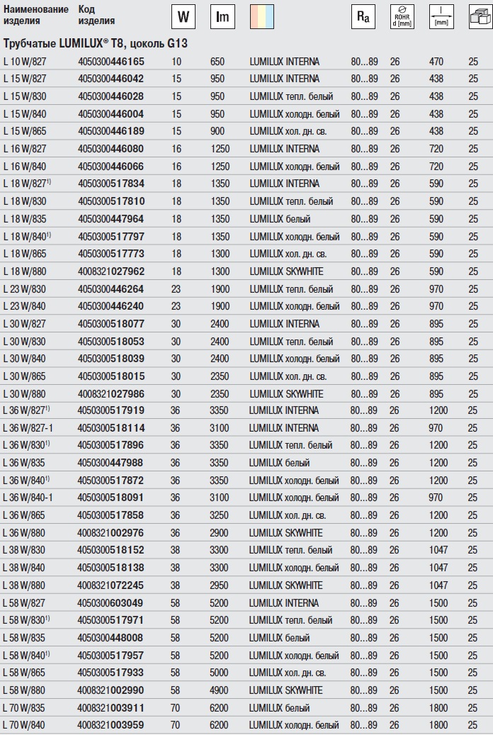 Лампы LUMILUX® диаметром 26 мм, цоколь G13