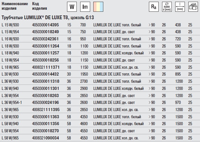 Лампы LUMILUX® DE LUXE диаметром 26 мм, цоколь G13